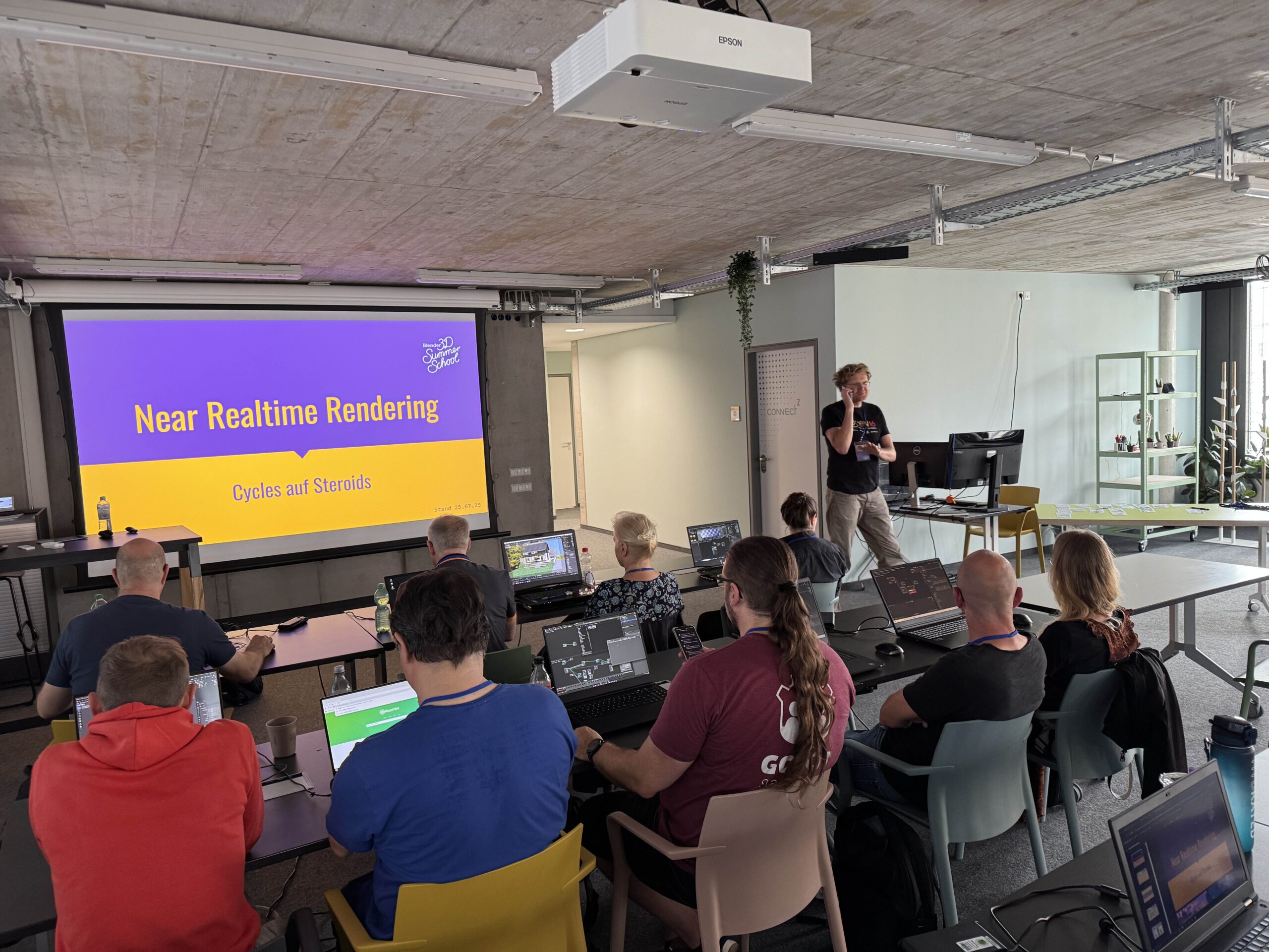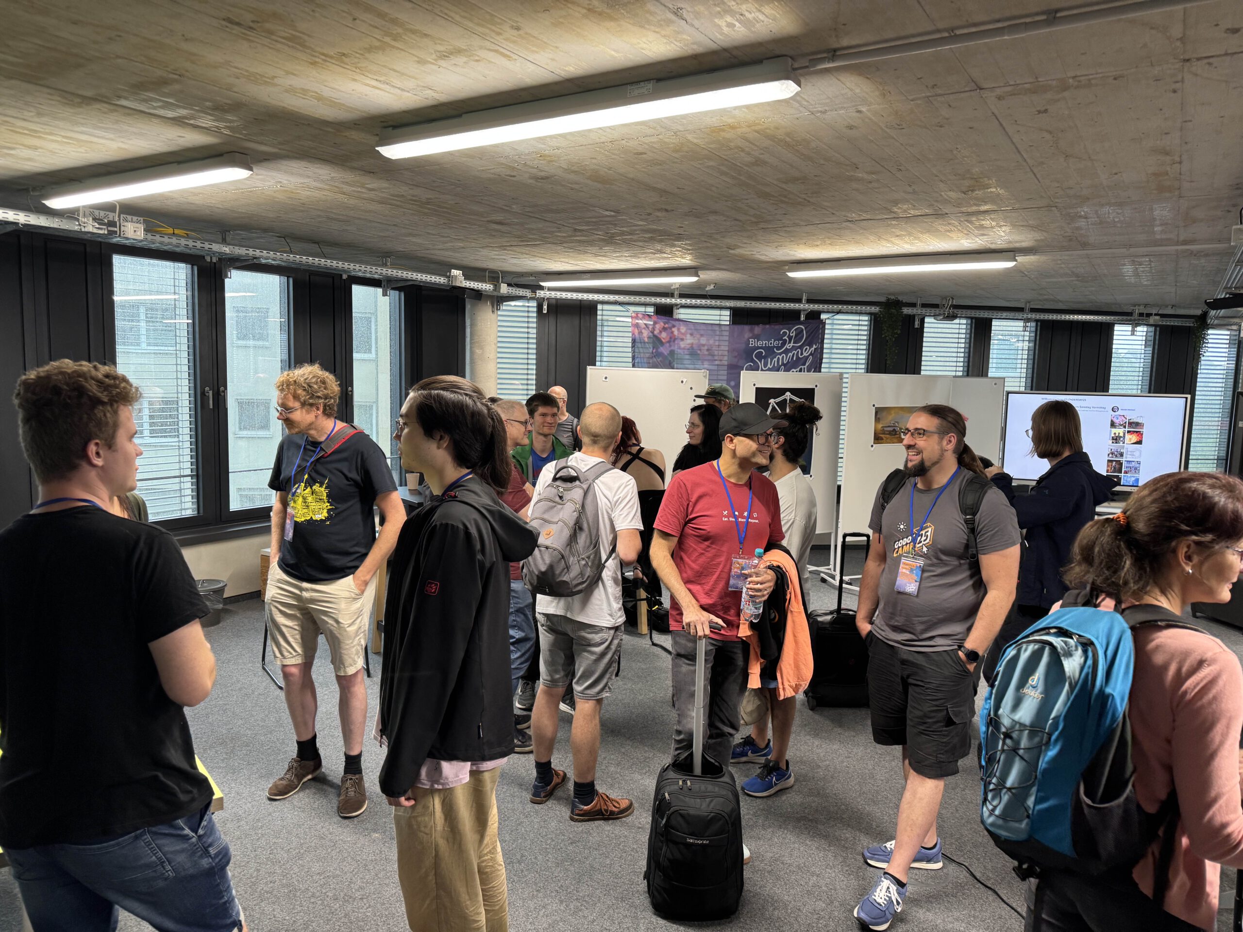 Mit der 17. Auflage des BlenderDay und der BlenderSchool, die vom 25.07.25 bis 27.07.25 in Mannheim stattfand, gingen wir in die vollen und lasteten unsere Räumlichkeiten bis an die Unterkante aus um unseren TeilnehmerInnen eine noch nie dagewesene Vielfalt an Themen rund um Blender, 3D und Game Engines anzubieten. Nicht weniger als 20 Workshops (Dauer jeweils 3h) standen zur Auswahl und konnten für die verfügbaren 5 Workshop-Zeitslots individuell gebucht werden. Jede/r konnte sich ihre / seine eigene Traum-3D-School zusammenstellen in den 3 Schwierigkeits-Kategorien „Newbee“, „Beginner“ und „Fortgeschritten“.